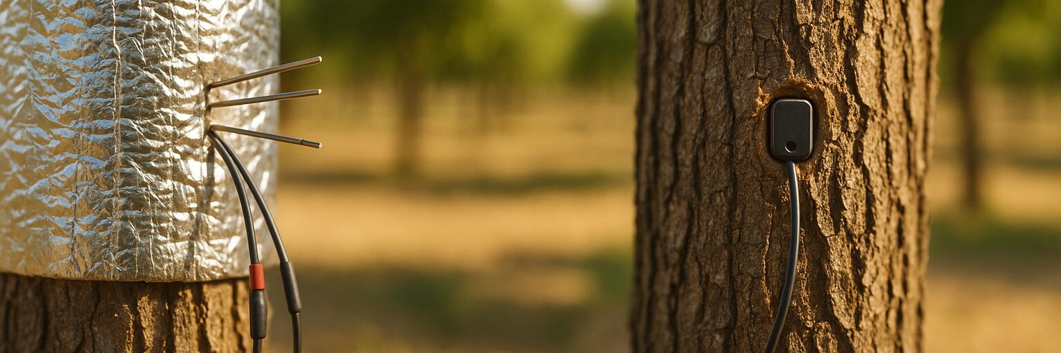 - Thermal insulation maintenance: Sap flow probes must be wrapped in insulation jackets to prevent ambient temperature from affecting the thermal signal. These jackets degrade over time, can be displaced by wind or animals, and need periodic inspection — especially in commercial orchards where equipment moves between rows.